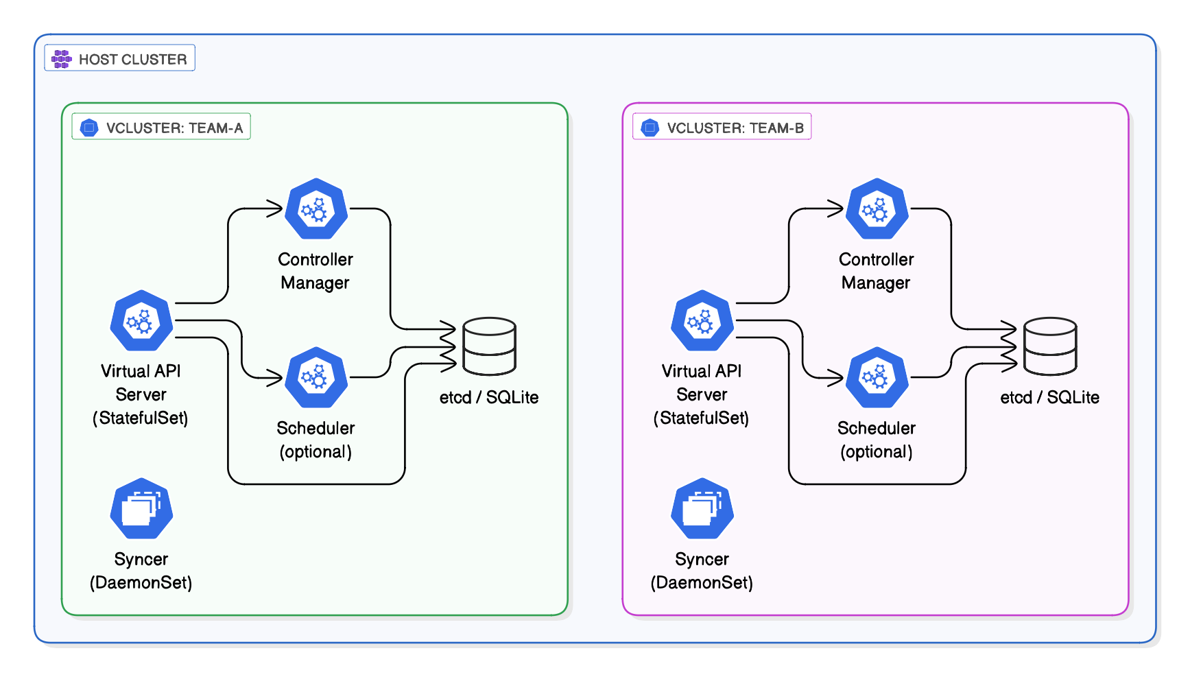 vCluster provides hard isolation with virtual clusters. It’s ideal for external customers, compliance scenarios, or cases where tenants need cluster-admin access. You get the security of separate clusters without the operational burden.